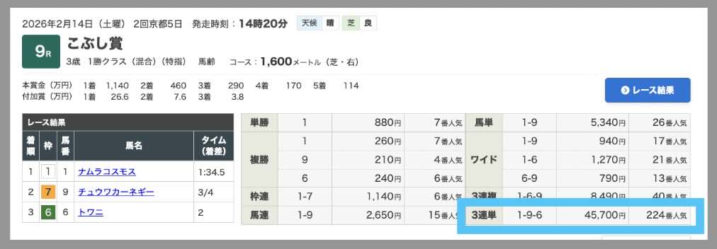 | 的中率 | 44%(16戦7勝9敗) |
