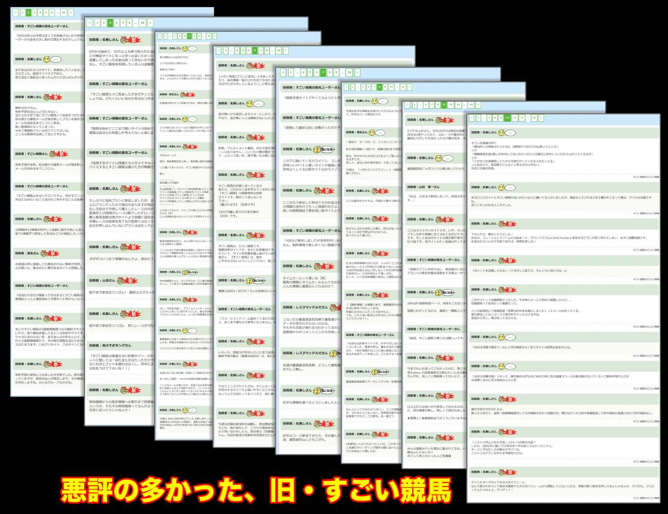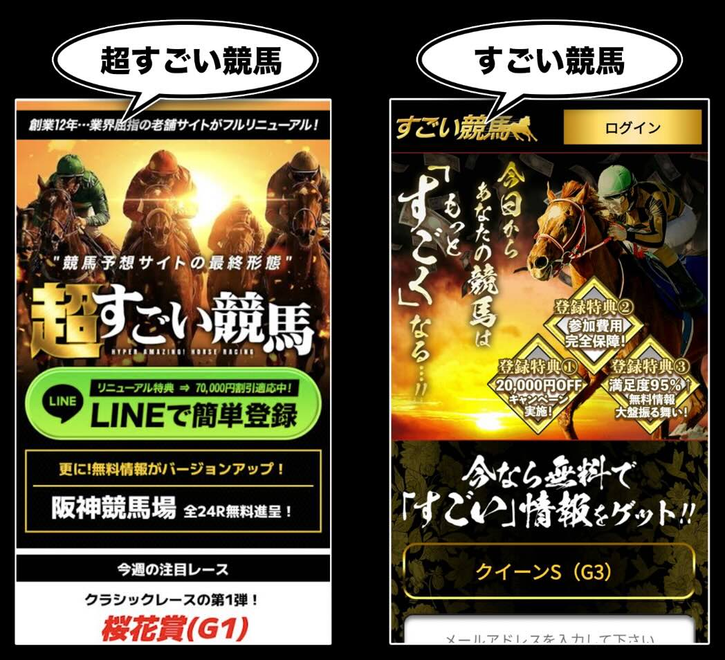「超すごい競馬」という競馬予想サイトは、「悪評価」と認定の旧サイト「すごい競馬」のリニューアルとして引き継ぐ形で構成されているが、サイト統合やリダイレクト処理は確認されていない。そのため、旧サイトと新サイトが併存する状態となっている。