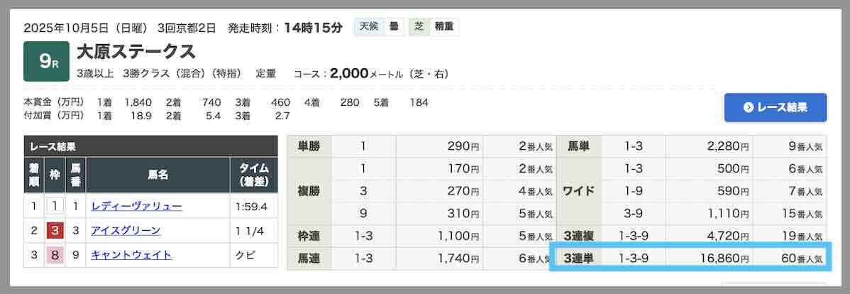 入会して1年半ジャイアントリキング今回はスプリンターS❗️3連単60点、不的中 5戦0勝❗️猿の予想以下だ❗️送られて来る連絡は猿の寝言ですから、恐ろしい詐欺集団です騙されないで下さい。