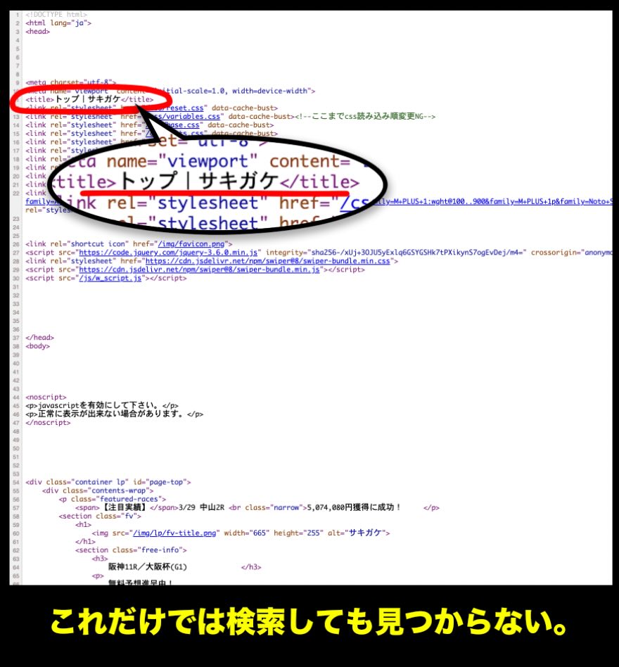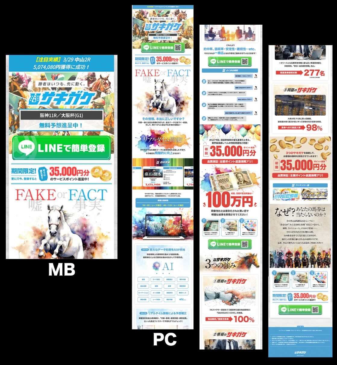 サキガケの非会員TOPページは「視覚的インパクト」と「高額リターン訴求」に強く依存した構成であり、競馬予想サイトとしての本質的な情報提供よりも、第一印象での誘導を優先した構成となっている。