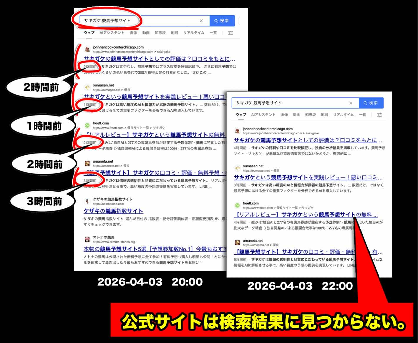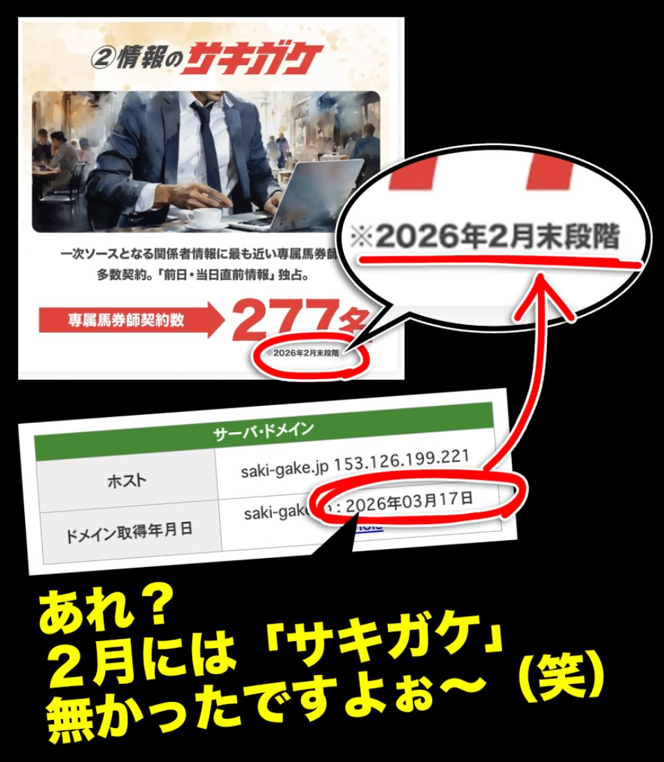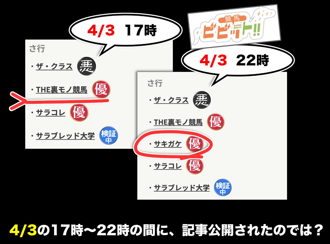 2026年4月3日20時頃に「サキガケ」という競馬予想サイトが確認された。