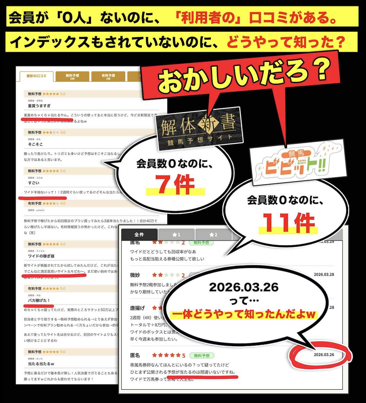 以上を踏まえると、このトップページにおける数値や構成は、ユーザーの関心を引くための演出として提示されている側面が強く、情報の信頼性を判断する材料としては慎重に扱う必要がある。