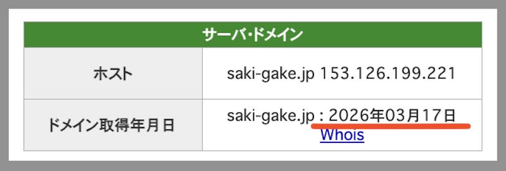 しかし、サキガケのドメイン契約日は「2026年3月17日」であり、公開ベースで確認できるサイトの存在は、それ以降となる。