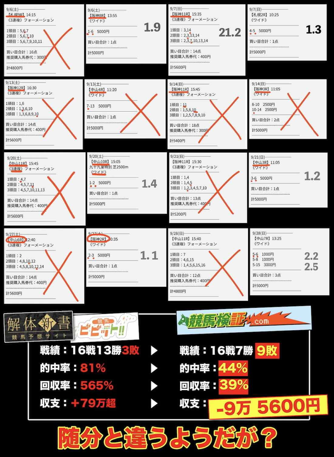 検証期間 | 16レース(集客サイトの倍) |