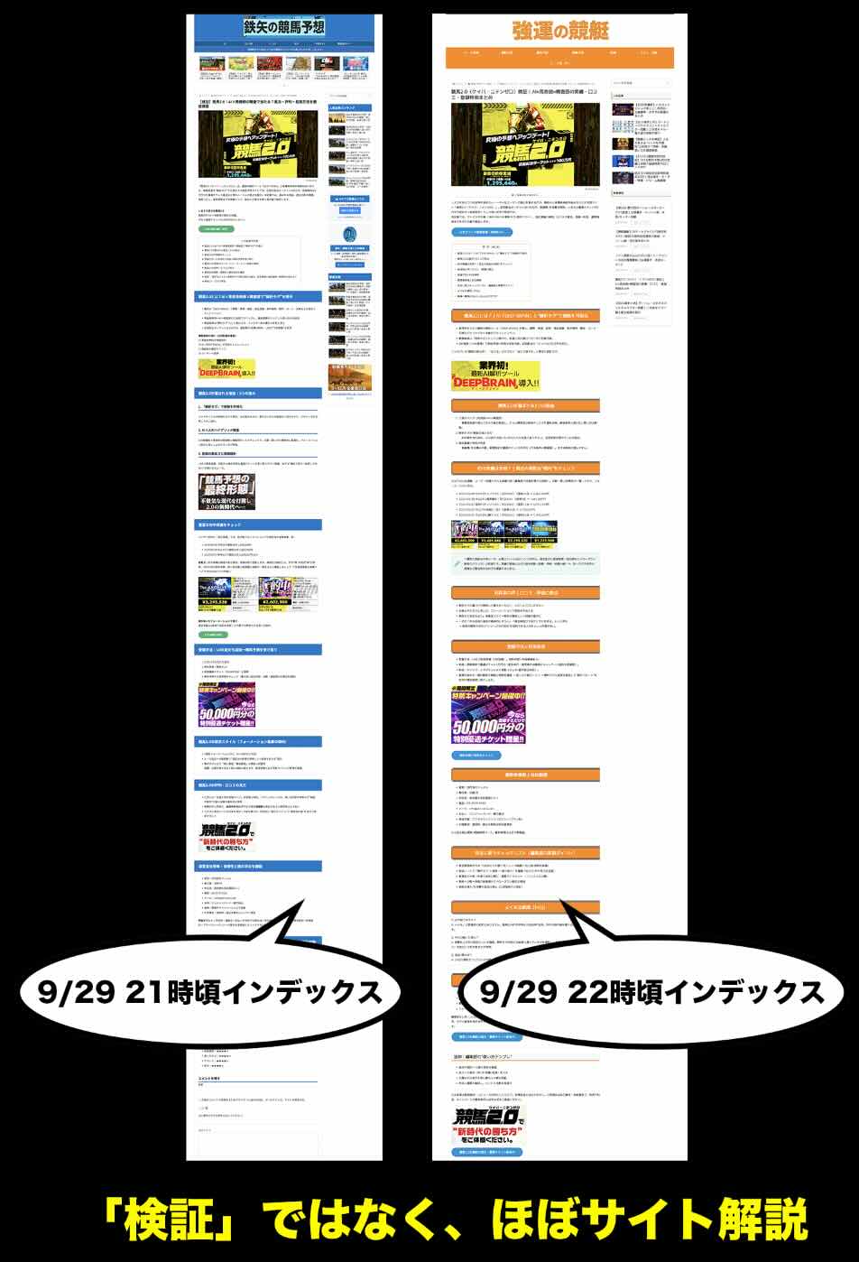最も古いものは「鉄矢の競馬予想」で、公開タイミングは9月29日21時頃。続いて「最強の競艇」が22時頃にインデックスされていた。
