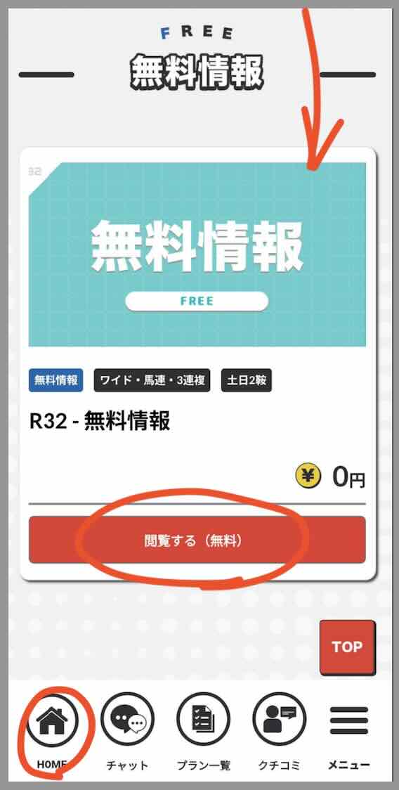 次のページで確認できるポイントコースの一番上下に「無料情報」とあるので、これがR32の無料予想だ。