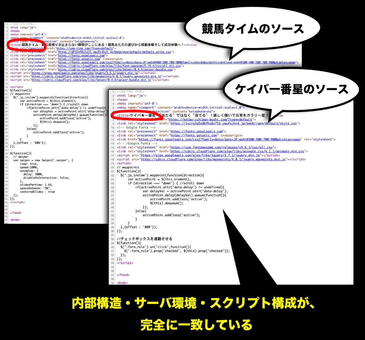さらに、グループサイトとのあいだでソースコードやサーバー構成までが酷似している点も見逃せない。