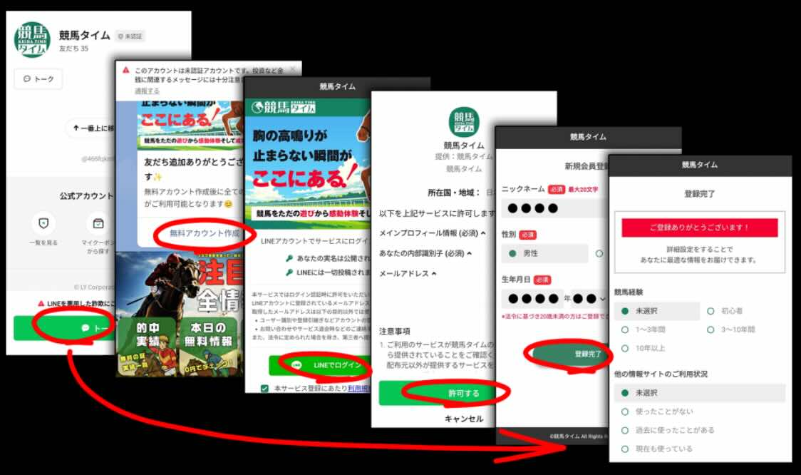 競馬タイムへの会員登録は、LINEの友だち追加のみだ。