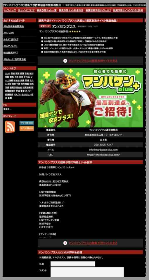 マンバケンプラスという競馬予想サイトの運営所在地を検証
