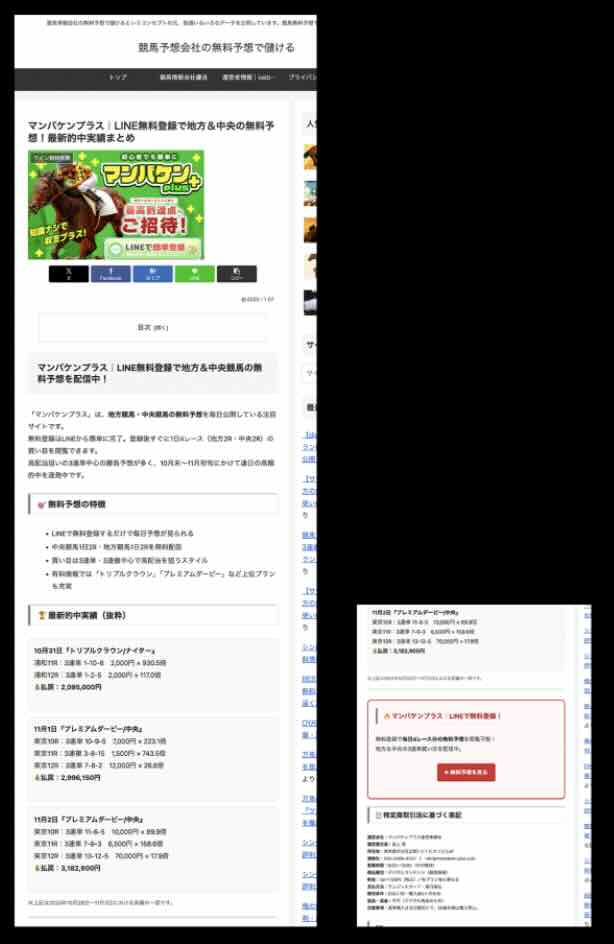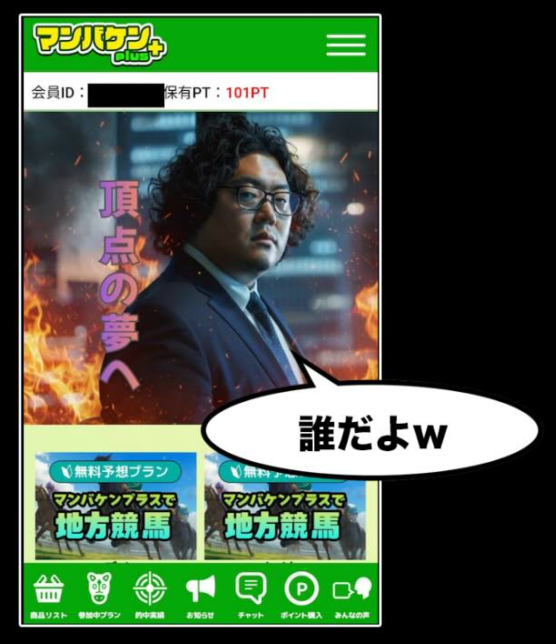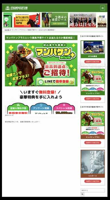 マンバケンプラスという競馬予想サイトの会員ページを検証