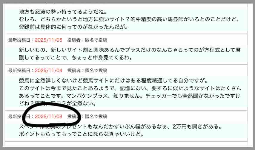 マンバケンプラスという競馬予想サイトの口コミ・評判について