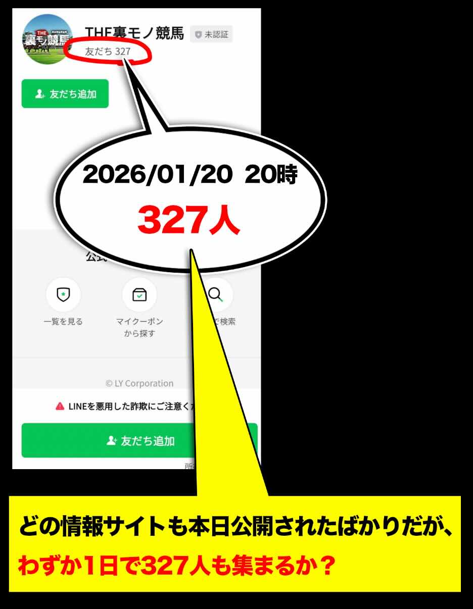 公開直後に一気に「327人」まで増加した会員数が、筆者が裏モノ競馬を発見してから40時間が経過しても、わずか1人しか増えていない。