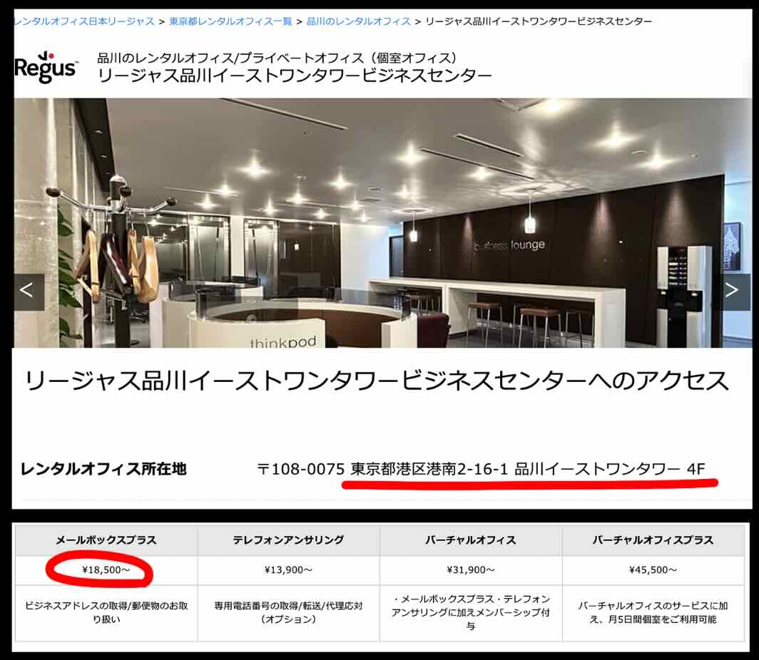 この住所の正式表記は「東京都港区港南2-16-1 品川イーストワンタワー4階」である可能性が高く、同ビル内には「リージャス」が運営する、月額18,500円から利用可能なバーチャルオフィスが存在している。