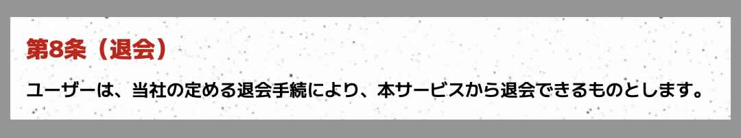裏モノ競馬を退会する方法は、裏モノ競馬の利用規約(下画像参照)を見ると「ユーザーは、当社の定める退会手続により、本サービスから退会できるものとします」と一言だけ載っている。