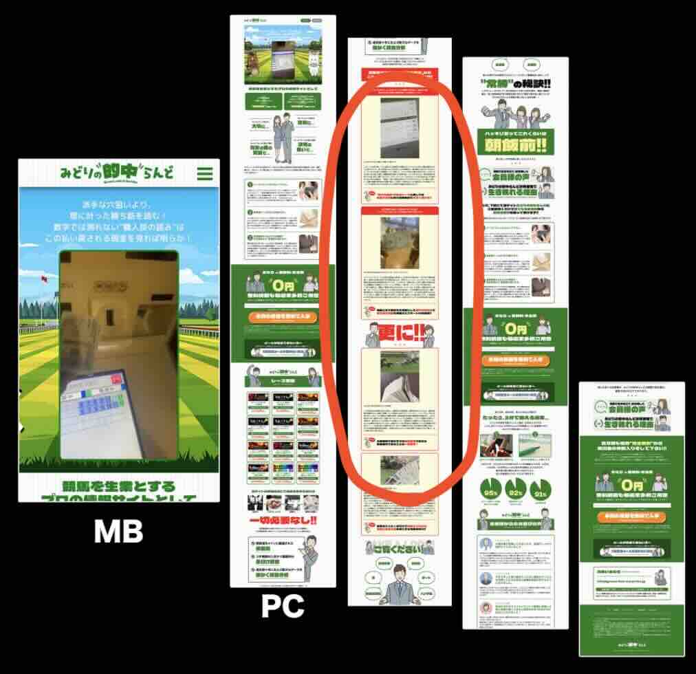 少なくとも、閲覧する側によっては「みどりの的中らんどで的中したかのように見せる演出」と受け取られる余地があり、閲覧する側によっては、こうした構成が意図的に誤解を招くよう設計されているのではないかと受け取られても不思議ではない。