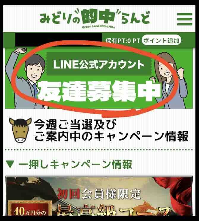 「みどりの的中らんど」という競馬予想サイトの会員登録前のトップページを確認すると、近年主流となっている「LINEの友だち追加」を用いた登録導線は見られず、メールアドレスを送信して会員登録を行う従来型の方式のみが採用されていた。