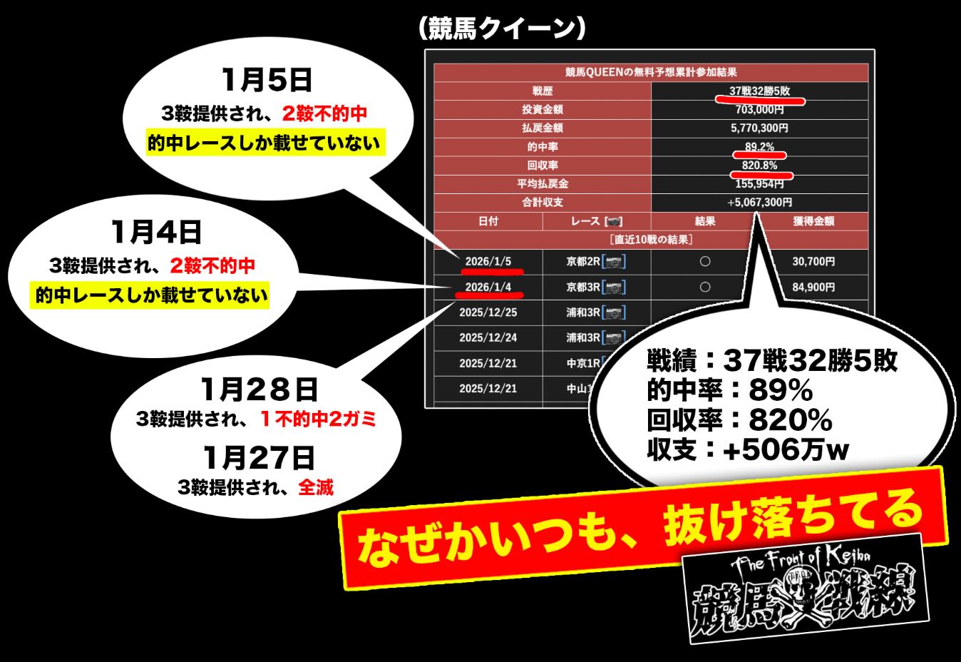 競馬クイーンの無料予想の長期検証結果