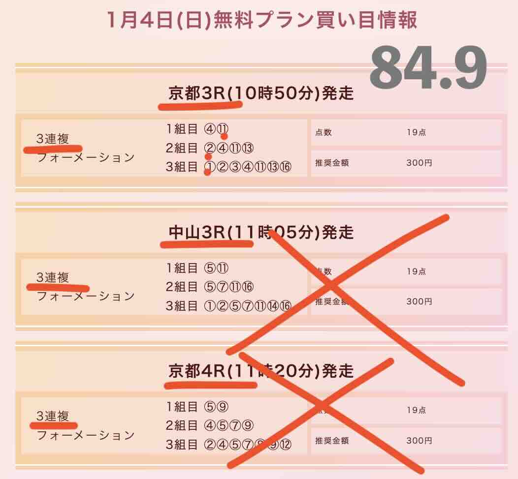 競馬クイーンで提供される無料予想(無料情報)の内容は、1日3レースの提供となり、券種は基本的に「3連複フォーメーション」の提供となる。