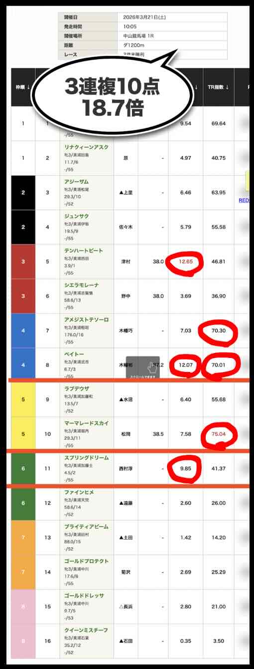 「Perf指数」と「TR指数」の上位3頭を基準に「3連複」や「ワイド」などで馬券を組み立てて検証しているケースが見られる。
