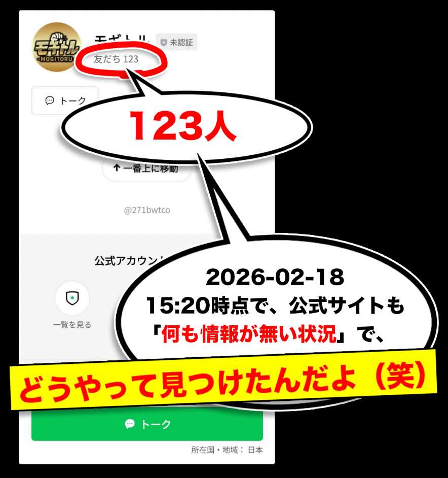 2月18日15時20分時点でも何も情報が見当たらない中で、これらの口コミ投稿者はどのような経路で「モギトル」の公式サイトを把握し、参加に至ったのかという点は、慎重に検証すべきポイントである。