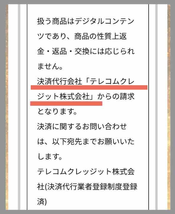 実際に登録後に決済情報を確認したところ、振込先口座名義は「テレコムクレジット」となっており、決済代行会社を経由する方式が採用されていた。