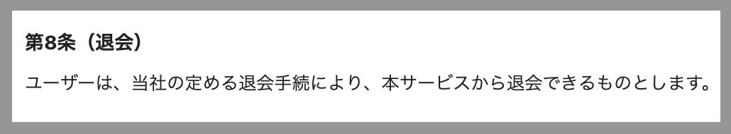 モギトルを退会する方法は、モギトルの利用規約(下画像参照)を見ると「ユーザーは、当社の定める退会手続により、本サービスから退会できるものとします。」と一言だけ載っている。