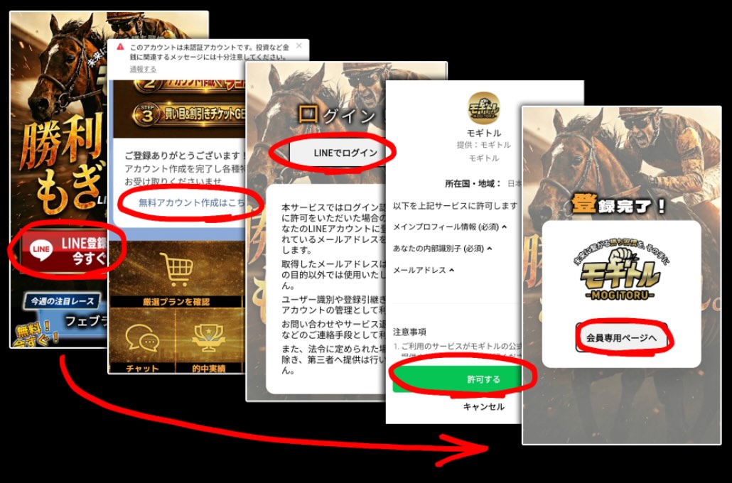 モギトルという競馬予想サイトは、「LINEの友だち追加」で会員登録を行う方式を採用している。