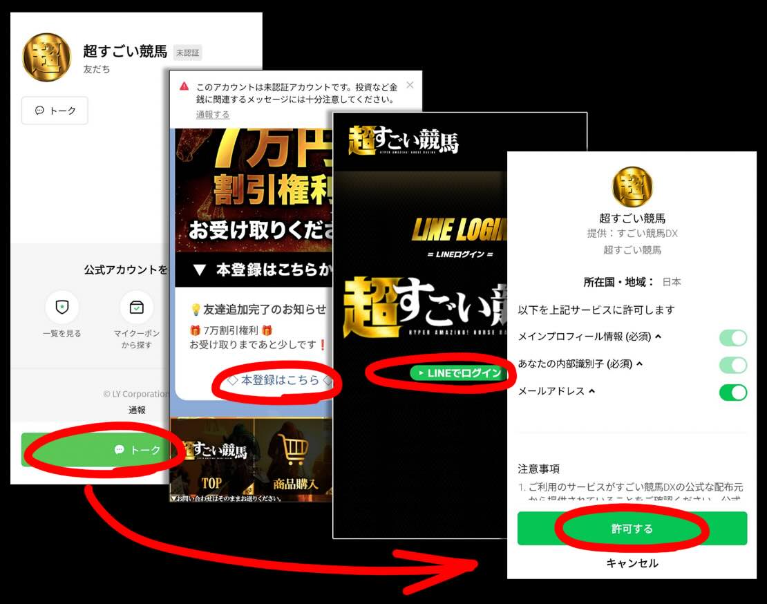 超すごい競馬への会員登録は、LINEの友だち追加のみだ。