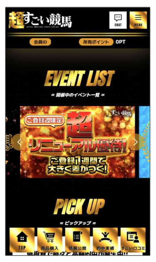超すごい競馬にログインすると、超すごい競馬の会員ページ(下画像参照)にアクセスすることができる。
