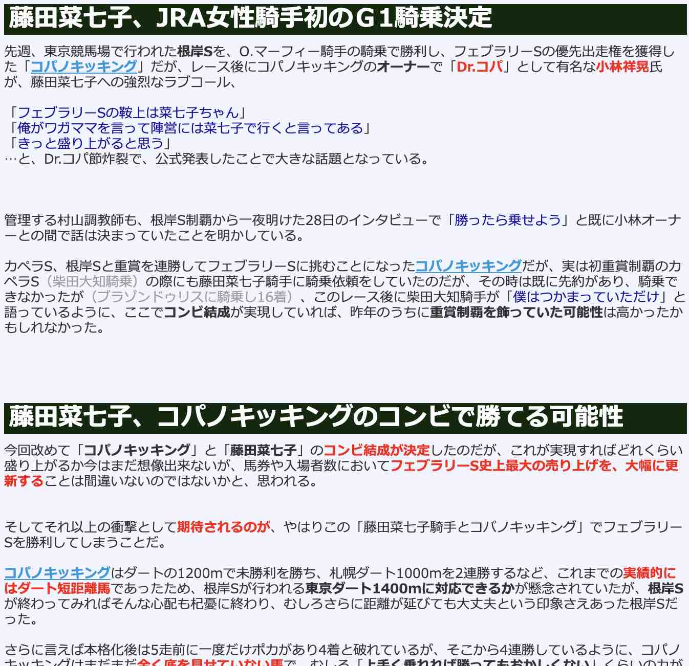 競馬検証.comの競馬コラム「藤田菜七子、電撃ニュース」