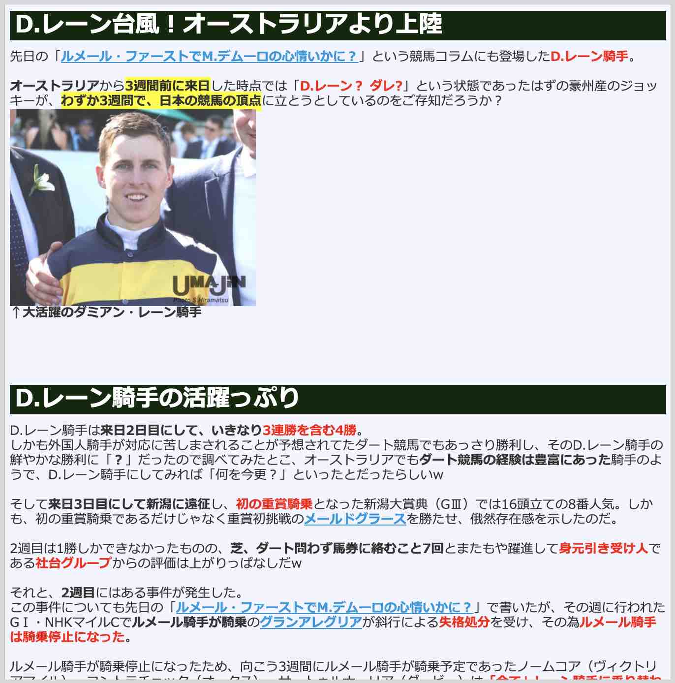 競馬検証.comの競馬コラム「D.レーン騎手、25歳の台風の目」