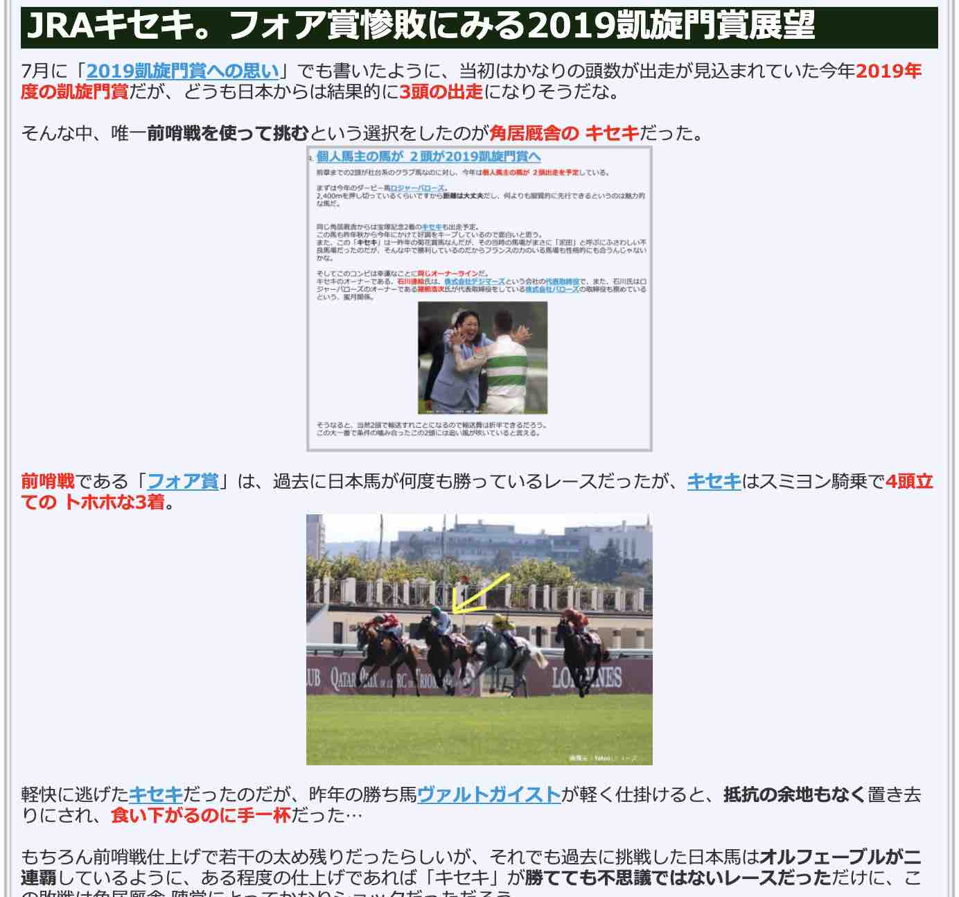 競馬検証.comの競馬コラム「キセキ。フォア賞惨敗にみる2019凱旋門賞」
