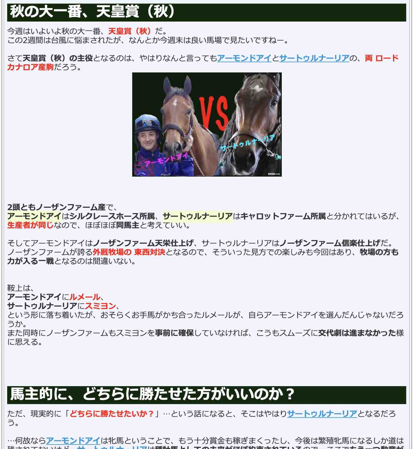 ノーザンファーム産で、アーモンドアイはシルクレースホース所属、サートゥルナーリアはキャロットファーム所属、馬主的に、どちらに勝たせた方がいいのか?