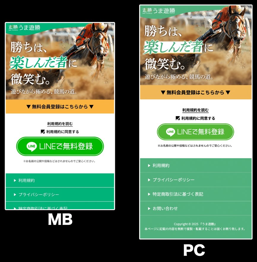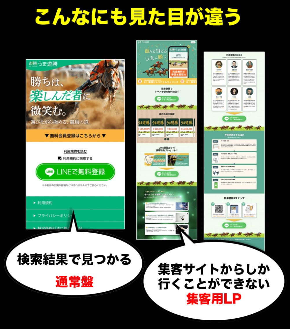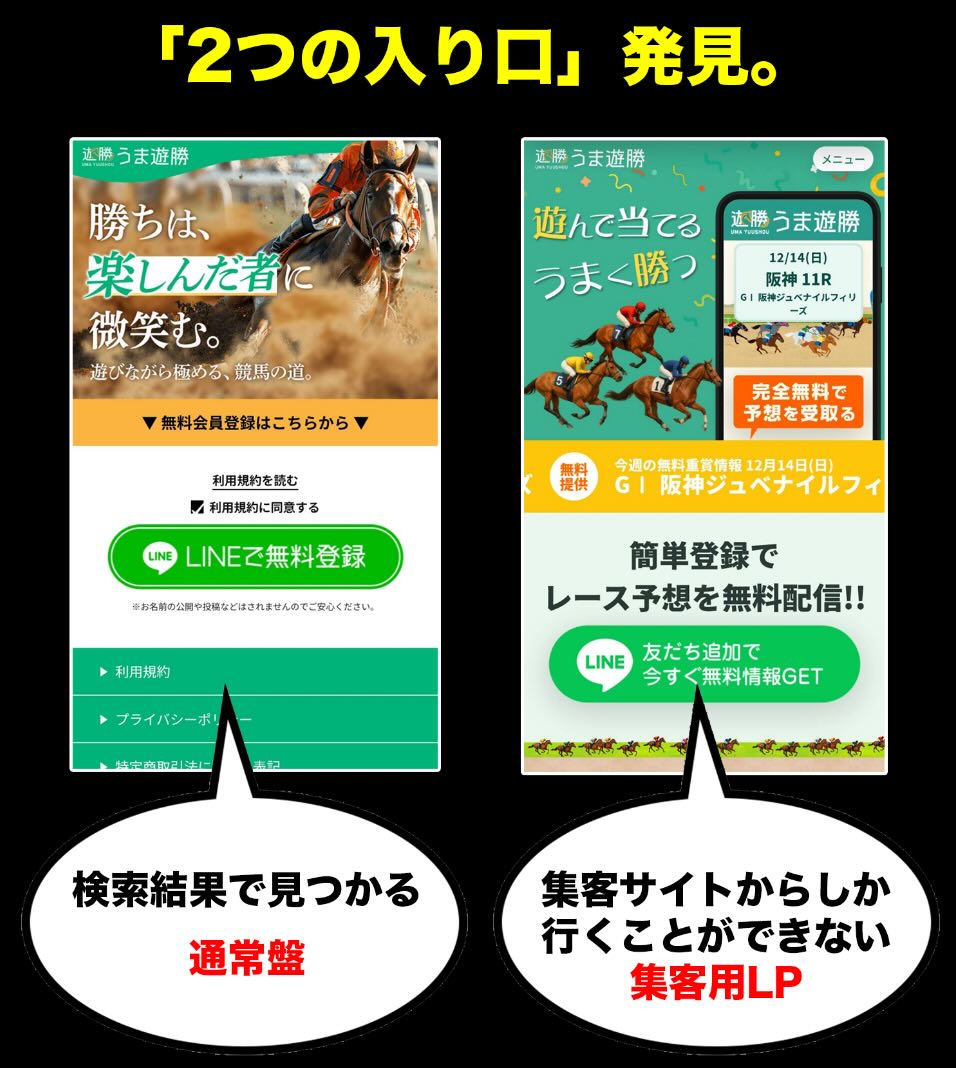 「うま遊勝」という競馬予想サイトを確認していくと、通常検索で表示される公式サイトとは別に、外部の媒体を経由したときだけアクセスできる「別の入口」が用意されていることが分かった。