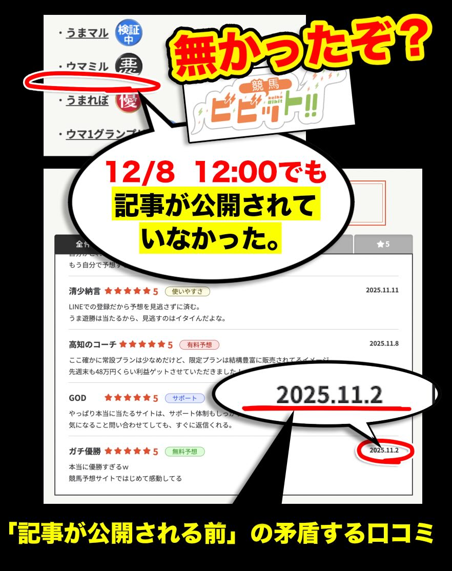 さらに、外部媒体に掲載された口コミを確認すると、記事が公開されるより前の日付で口コミが並んでいるなど、時間軸が整合しない記述が複数見つかった。