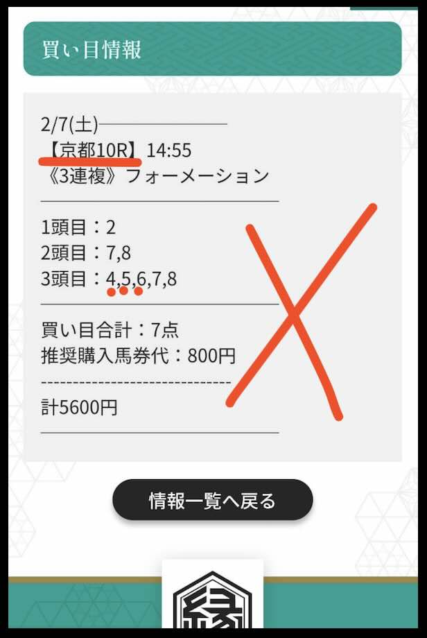 今回抜き打ちで検証した「縁」の無料予想(無料情報)は、2026年2月7日の京都10Rで提供された買い目である。