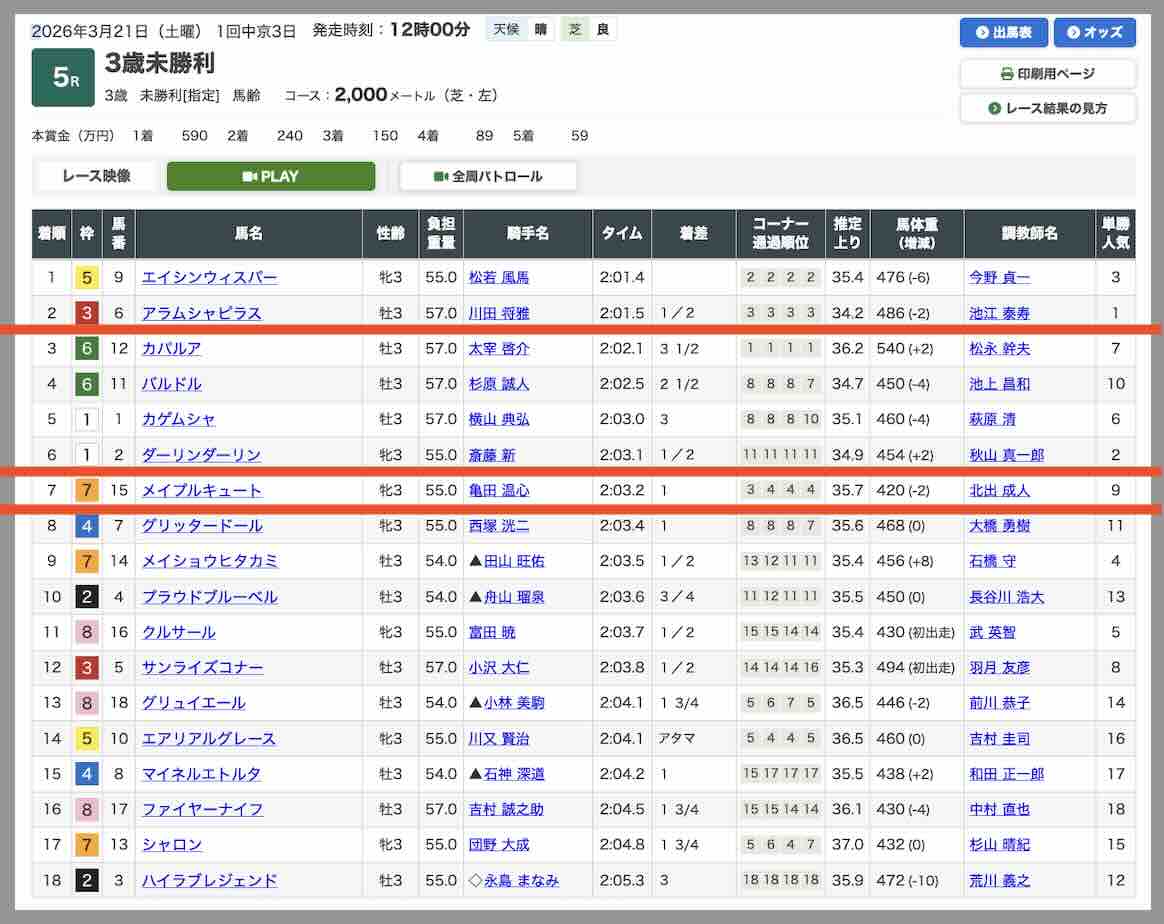 今回抜き打ちで検証する「縁」の無料予想(無料情報)は、2026年3月21日の中京5Rで提供された買い目である。