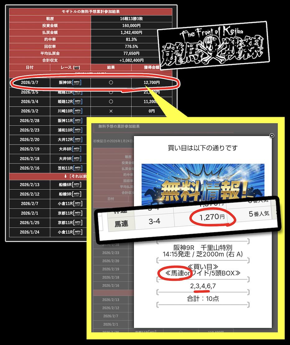 本記事ではその前提を踏まえ、外部集客サイトと同一条件で、16レースを継続的に検証を行い、公開されている戦績と実測データの差から、無料予想の実力を客観的に把握できる構成としている。