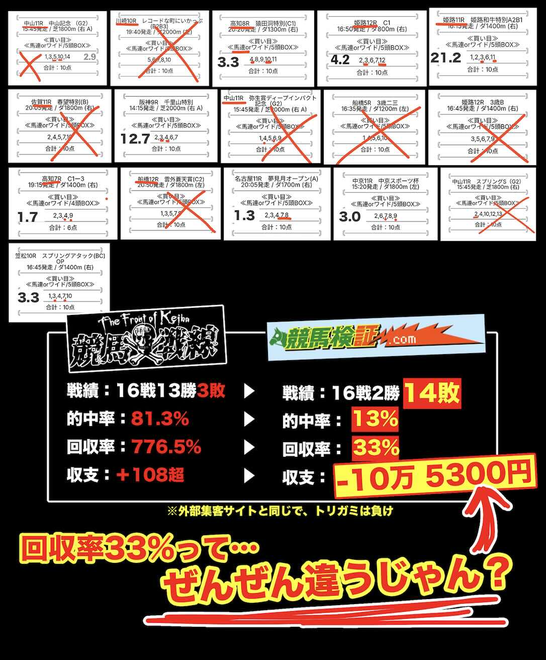 特に注目すべきは、外部集客サイトでは無料予想の検証結果を全レース掲載するのではなく、掲載内容に偏りが見られる点である。