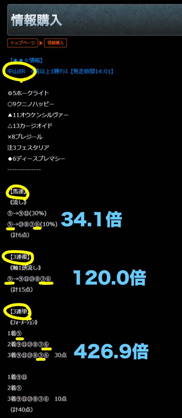 2/28には「ギア2」というコースで中山3Rにて288.6倍を18点で的中。いつもの如く600円での購入が推奨されていたので、記載どおりに馬券購入したら17万 3160円の払い戻しとなった。